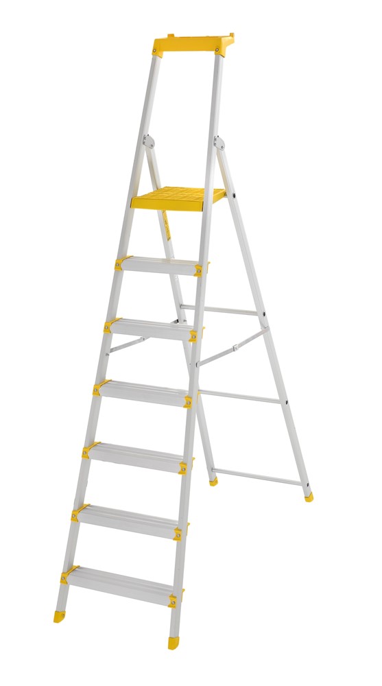 Tasotikkaat 44P Tasotikkaat 44P ovat täydellinen valinta kevyempiä tikkaita etsiville ammattilaisille. Ne sopivat erityisesti huoltoteknikoille, sähköasentajille ja muille ammattilaisille, jotka joutuvat liikkumaan paljon tikkaidensa kanssa. FDS-ruuvien (Flow Drill Screw) innovatiivinen kiinnitysteknologia takaa vakaan rakenteen, joka on erittäin kestävä ja pitkäikäinen. Erityisen leveään askelman etureunaan voi mukavasti nojata ja sivuprofiilien pyöristetyt reunat tekevät tikkaista miellyttävät kantaa. Painoltaan optimoitu tarvikehylly ja työtaso sekä ohuet alumiiniprofiilit takaavat, että tikkaita on helppo kuljettaa ja käsitellä. Teräksisten rajoittimien ansiosta työskentely on turvallisempaa. Alumiiniset profiilit on anodisoitu, jotta kätesi tai vaatteesi eivät tahriinnu.
