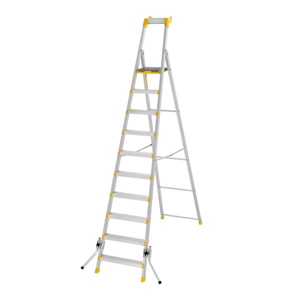 Tasotikkaat 55P UUSI Jykevät tasotikkaat laatutietoisille ammattilaisille. Täydellinen valinta käyttäjille, jotka haluavat monikäyttöiset ja luotettavat tikkaat monenlaisiin töihin. FDS-ruuvien (Flow Drill Screw) innovatiivinen kiinnitysteknologia takaa vakaan rakenteen, joka kestää erittäin kauan eikä taivu. Askelmien etuosat on muotoiltu ergonomisesti, jotta niihin voisi mukavasti nojata. Sivuprofiilin muotoilun ansiosta tikkaita on mukava kantaa. Syvä, alumiininen tarvikehylly on ruuvattu suoraan sivuprofiileihin kestävyyden